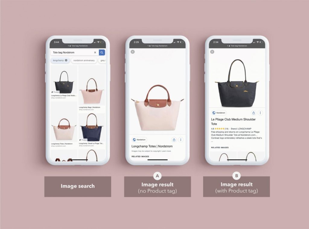 Here are two examples of Google Image results: option (a) does not have a Product tag, option (b) has a Product tag. Which do you think is more helpful to online shoppers?